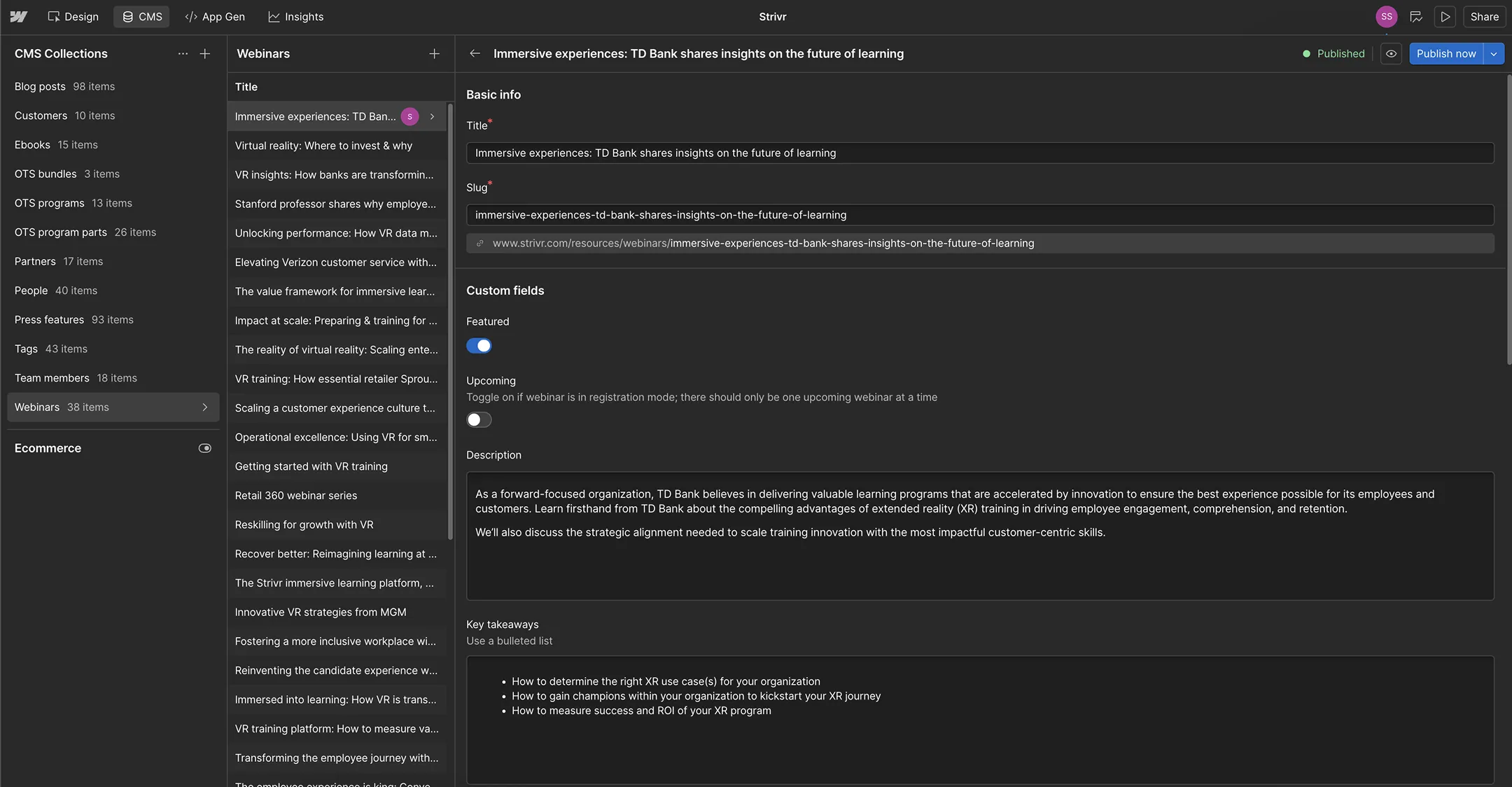My studio worked with Strivr for over two years to design core product features and revamp their marketing site and help documentation. During our partnership, Strivr landed clients like Walmart, Verizon, Bank of America, and Advent Health and increased engaged site sessions by 57% YoY.